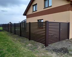 RD Dřínov - okenicový plot, dvoukřídlá brána, branka